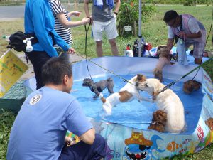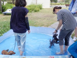 前回参加してすっかり慣れた様子でプールに入るわんちゃんなど、