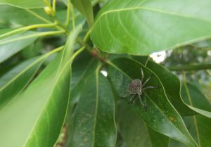 昆虫と目が合ったりすることも…(キマダラカメムシの幼虫だ!)