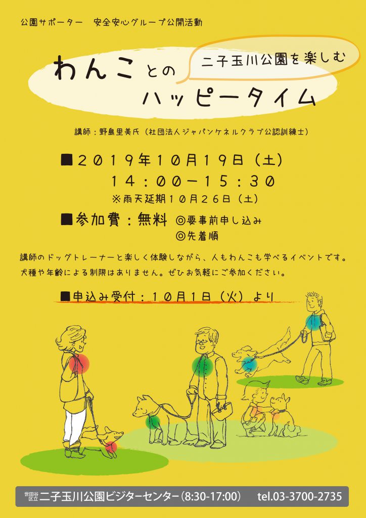 10月19日(土)に予定していた「わんことのハッピータイム」は、雨天のため10月26日(土)に延期いたします。