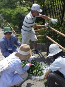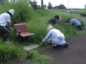 園内のゴミ拾いやベンチ下の草取りを行いました。