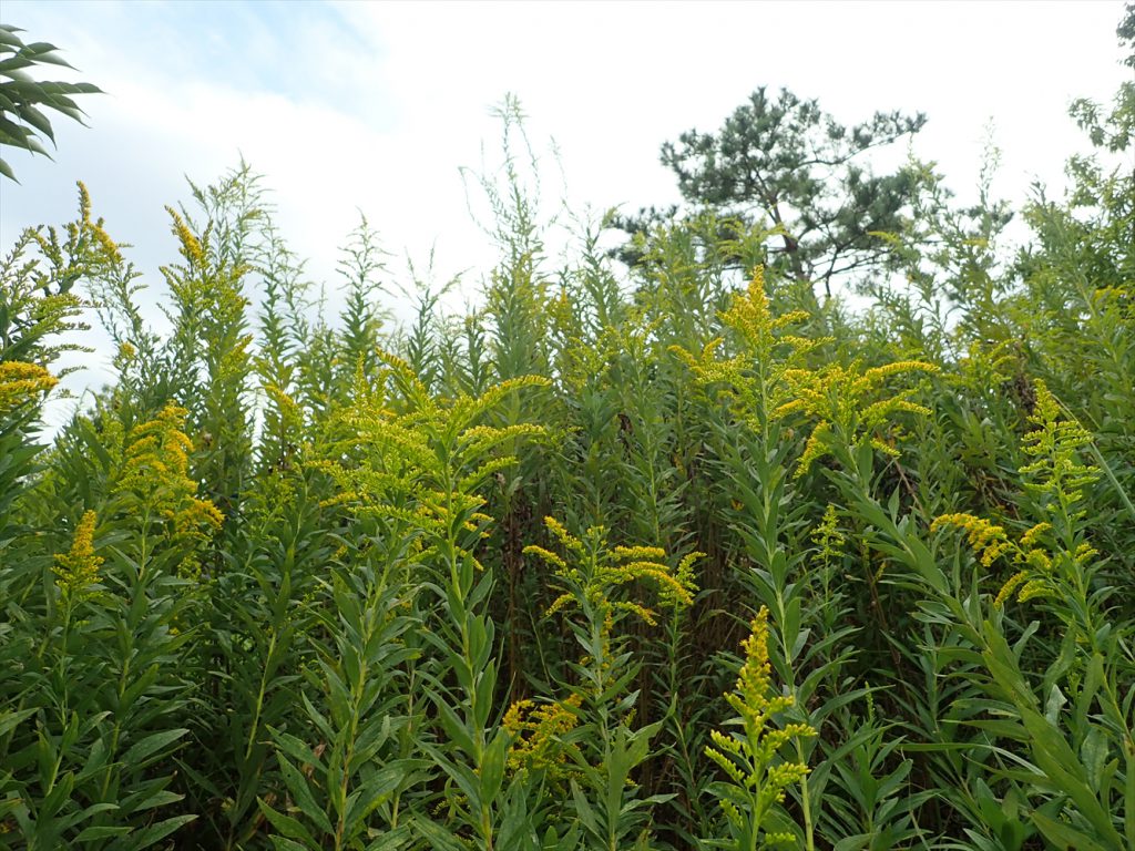 赤の次は黄色!外来植物でもあるセイタカアワダチソウのお花が咲いていました。