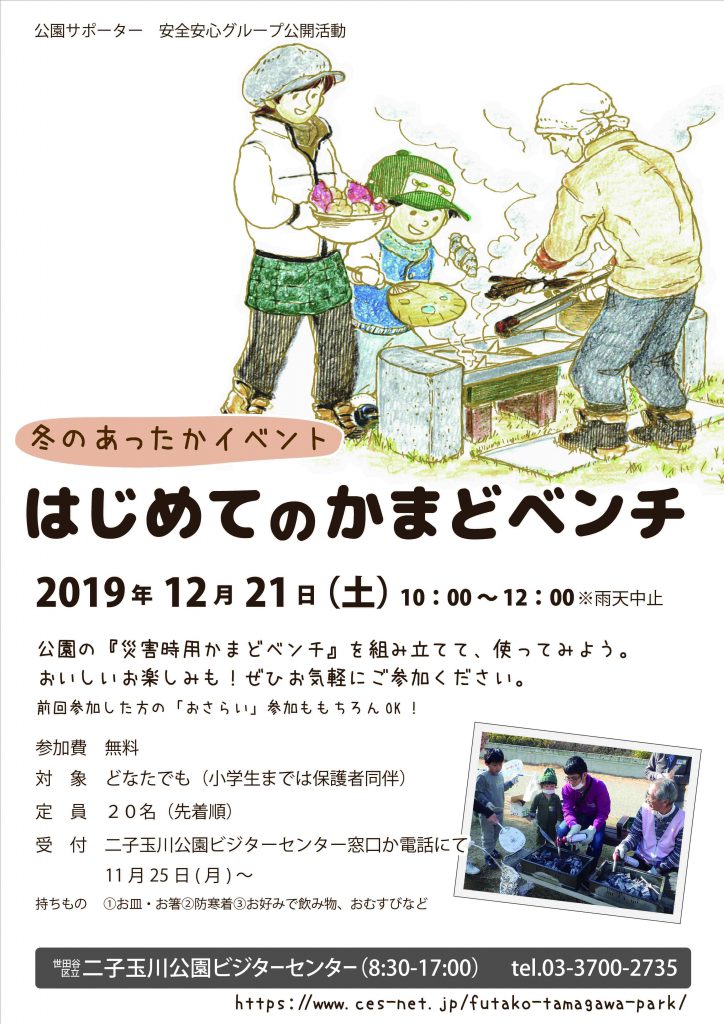 二子玉川公園ビジターセンター窓口か電話にて