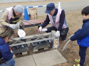 活動当日と同じ手順で炭に着火し、