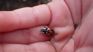 【ナナホシテントウ:サンクチュアリ周辺】 👈暖かければ冬でも活動。今日は数匹見つかりました。