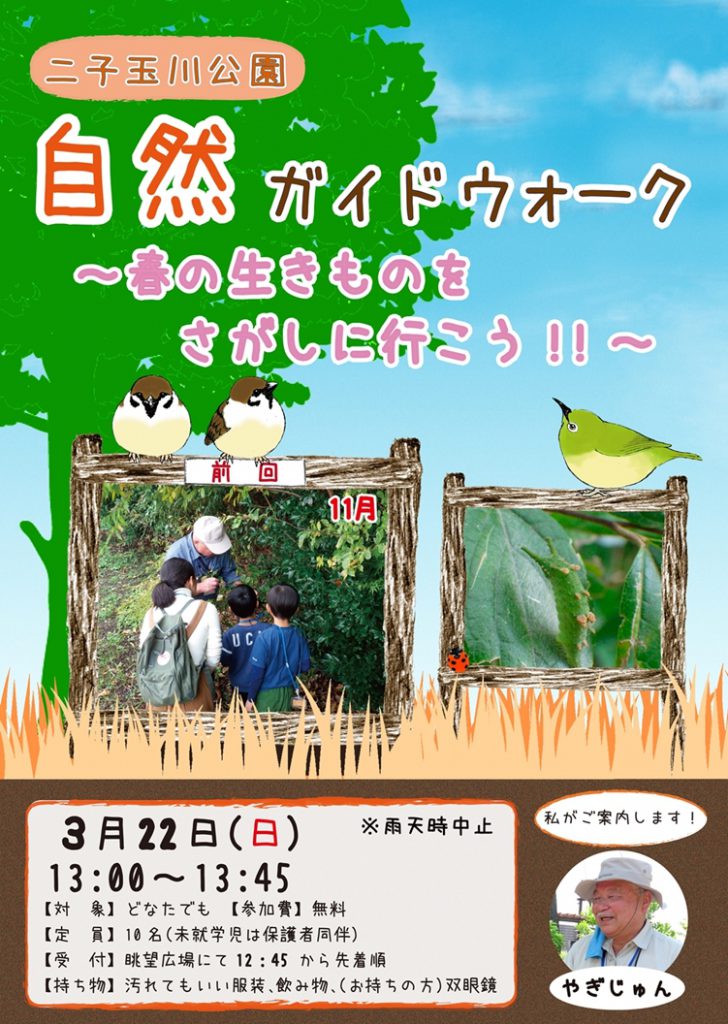 外も次第に暖かくなってまいりました。いよいよ春本番!活動を始める生物たちを一緒に探しに行きませんか?どんな生きものが見つけられるかは当日までのおたのしみ。