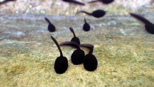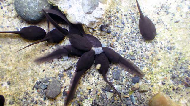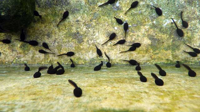 帰真園では今年もアズマヒキガエルのオタマジャクシたちが元気に泳ぎ出しています。