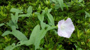 植栽に紛れているこの植物は【コヒルガオ】という名前で、現在花を見かける機会の多いツル性植物です。