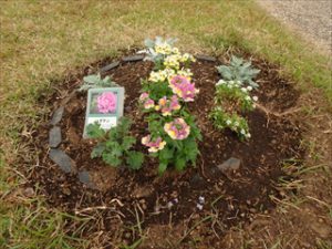 種から育てた花(ハボタンやカレンジュラなど)も一緒に植えました。