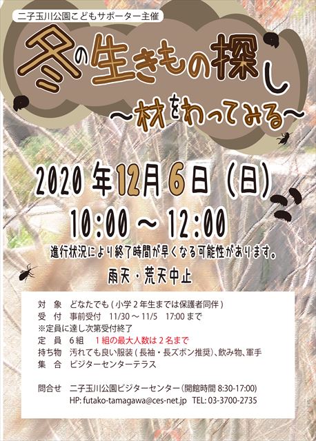 【問い合わせ】二子玉川公園ビジターセンター(開館時間8:30-17:00)