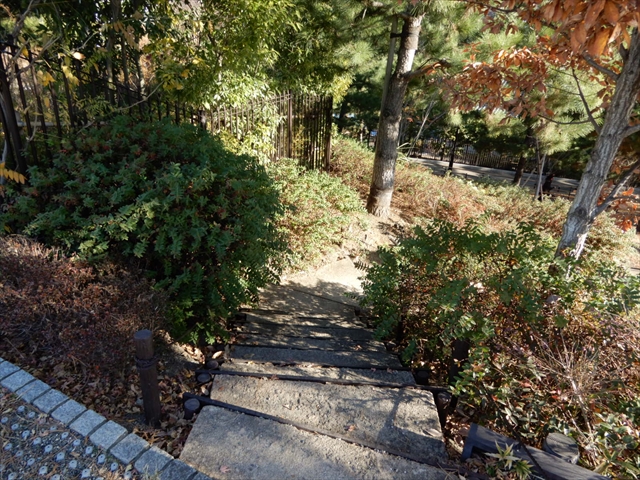 富士見台を超えて、カフェに向かう手前に下へ降りる階段が・・・。