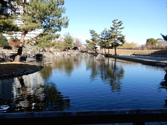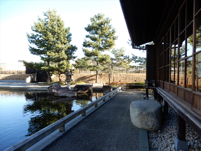 帰真園内の清水邸書院の軒下から、時雨亭に向かって池を眺めると、爽快~~!