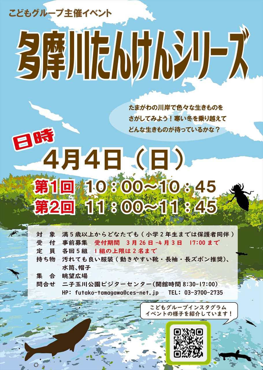 こどもグループ主催の自然体験イベント「多摩川たんけんシリーズ」の参加者を募集致します。参加をご希望の方は以下に記載された「新型コロナウィルス感染症予防対策に関するご協力のお願い」等をご確認の上でお申し込みくださいますようお願い申し上げます。