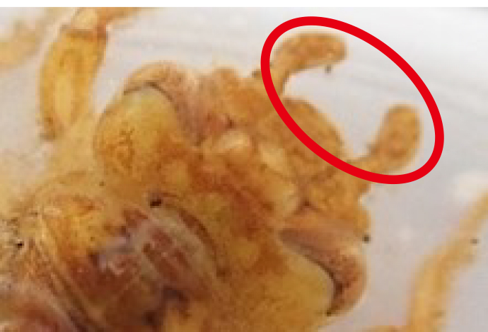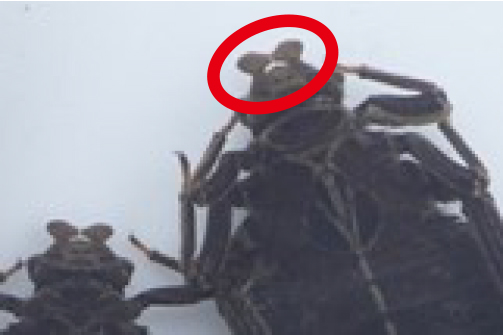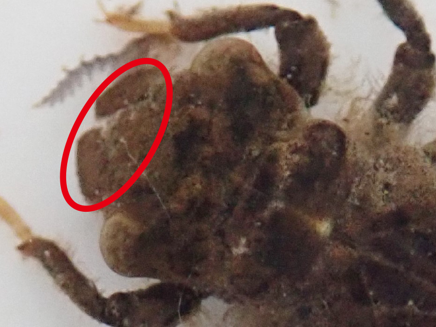 2本飛び出ているのが触角です。 最初に紹介した3種類のヤゴと比べてみるとサナエトンボは触角の先が尖らず、幅が広いのがわかると思います。