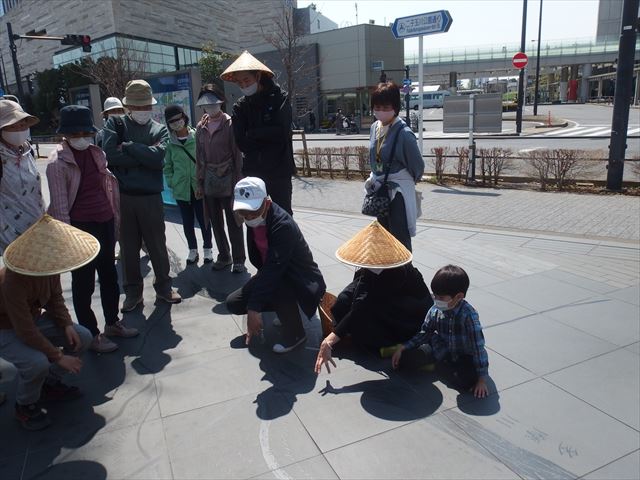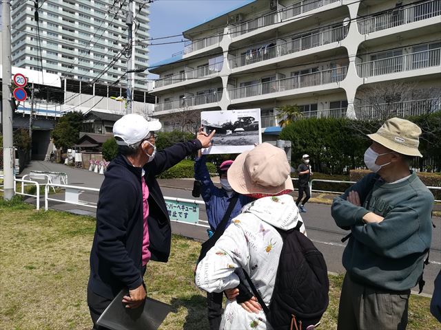 ・二子玉川在住歴60年以上の安全安心グループのサポーターさんを案内人として、江戸・昭和・平成・令和の二子玉川の歴史と今、これからをテーマに3グループのサポーターの皆さんと二子玉川公園の周りを歩きました。参加人数は11名でサポーターのご家族も2組、玉川公園管理事務所からお2人が参加されました。