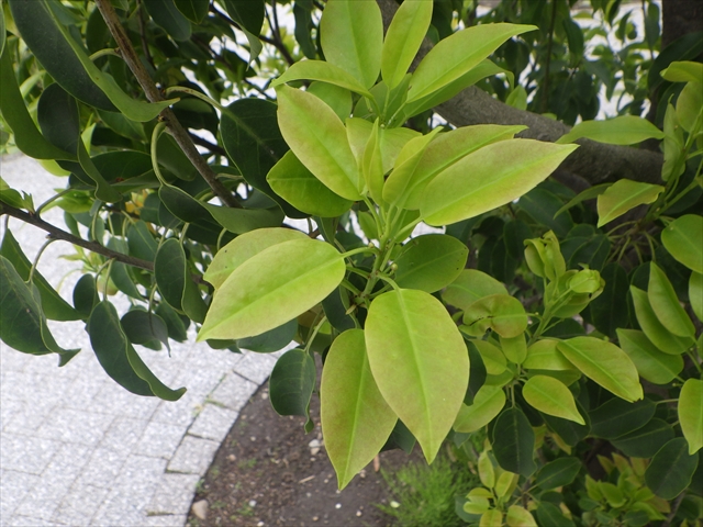 ソヨゴの葉っぱ:新しい葉は薄い黄緑。成長すると濃い緑に。