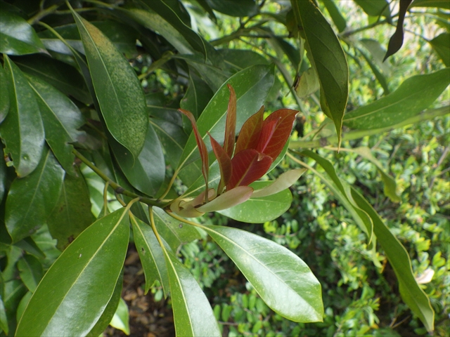 こんにちは、赤ちゃん葉っぱ!赤いんだね~~これはタブノキでした。
