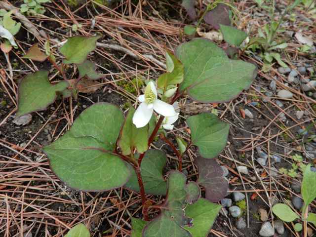 ドクダミ。ちなみに白いのは花びらでなく苞(ほう)と呼ばれる部分です。お花は中心の黄色い部分です。