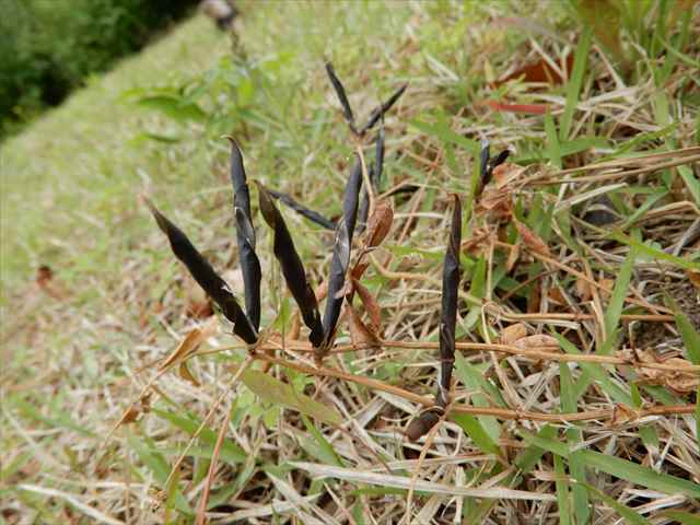 カラスノエンドウは種がはじけ飛んだ後。鞘が真っ黒でくるくる巻いていて、チョコ菓子みたい!
