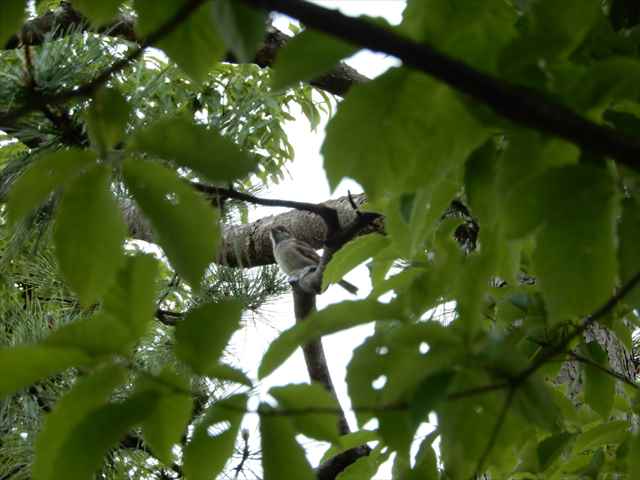 ちんちゅん。上を見上げるとスズメが飛んでます。