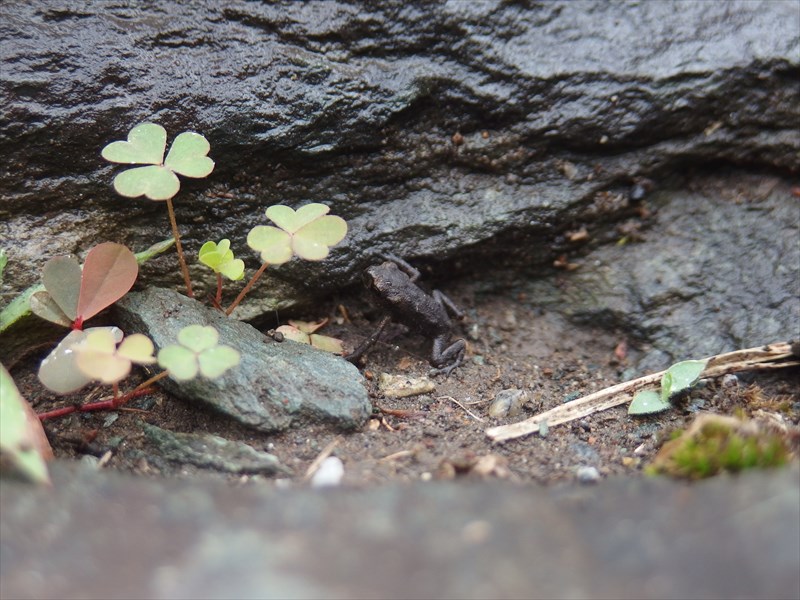 まだカエルになったばかりで、大きさはヒトの手の小指の爪ほどしかありません。