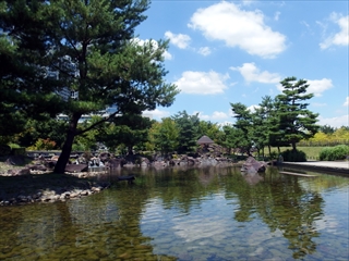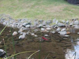 踏石に腰掛けて帰真園を眺めていると、水の音・セミの鳴き声と相まって