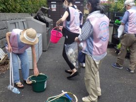 ・サポーターさんご家族も一緒に参加してくださり、和気あいあいとしたムードでした。園内を利用されている方への挨拶や声がけもしつつ、気持ちよく活動することができました。