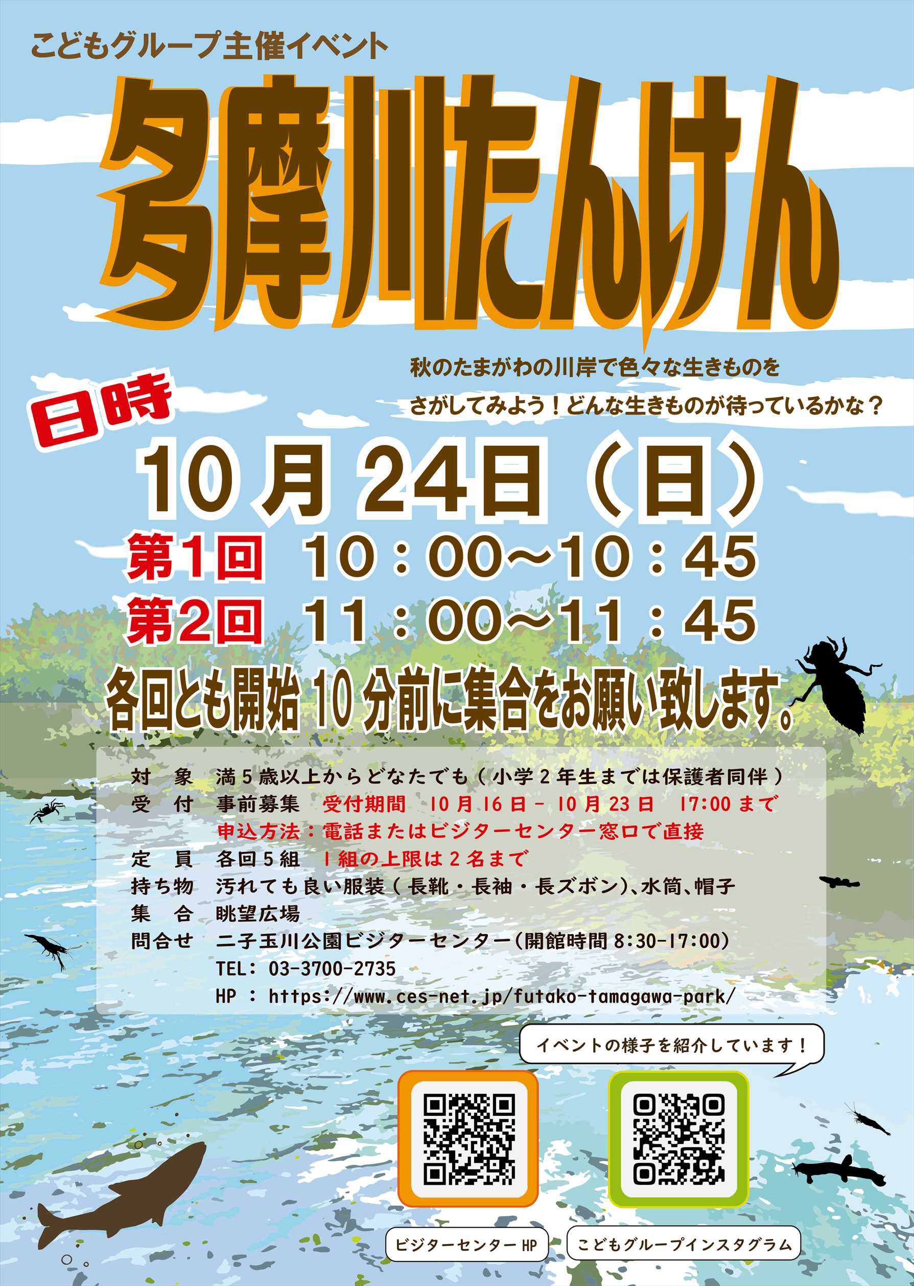 こどもグループ主催の自然体験イベント「多摩川たんけん」の参加者を募集致します。参加をご希望の方は以下に記載された「新型コロナウィルス感染症予防対策に関するご協力のお願い」等をご確認の上でお申し込みくださいますようお願い申し上げます。