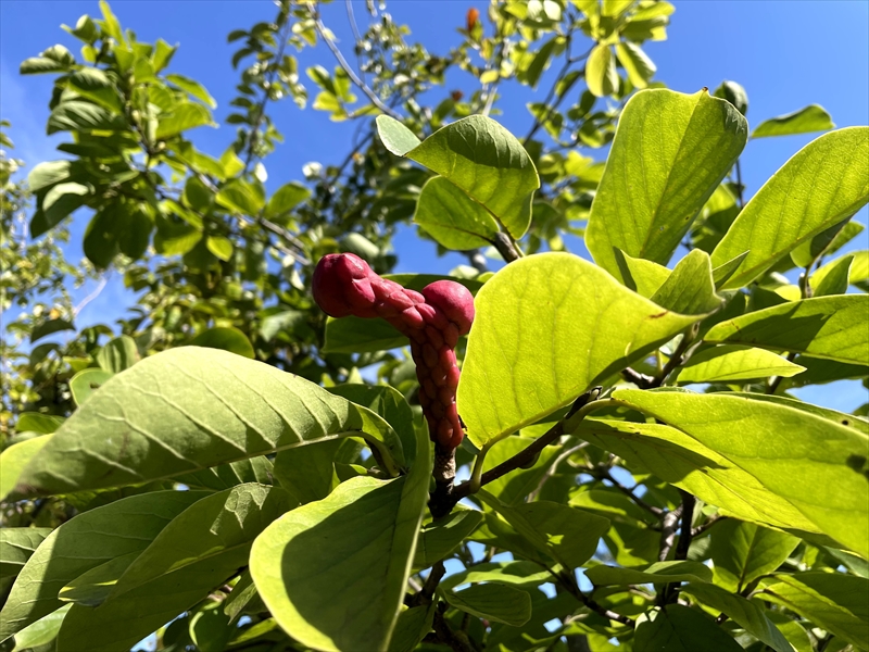 ハクモクレンの実もずいぶん色が濃くなってきました。花は早春に楽しむことができます。