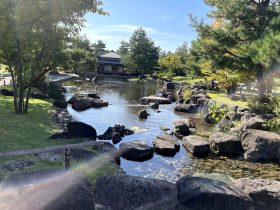 朝9時に開門する帰真園。時には貸し切り状態で風景を楽しむことも。