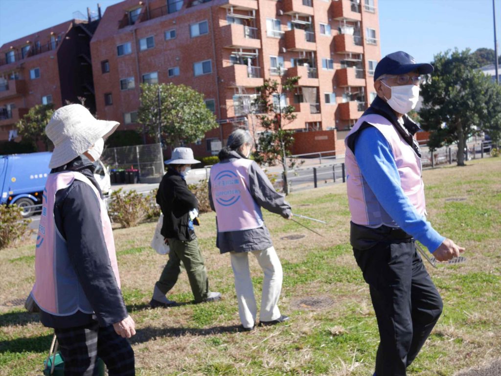 ・公園内の見回りも行い、美化活動をしながら、公園近くのバス停の名前の由来となった明神池跡の祠なども見学し、近隣施設などへの理解を深めました。