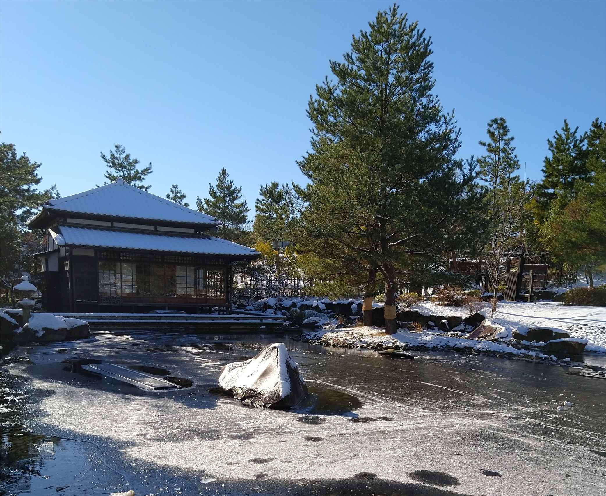 池に氷が張っていました!昨年の同じ時期と比べるとかなりしっかりと張っている気がします。