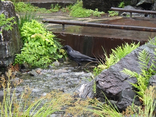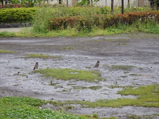 ハシボソガラスもムクドリも、ハトやスズメも地面や水の中をついばんでいました。
