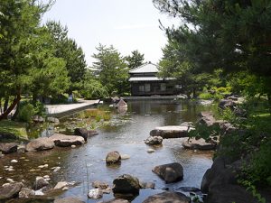 真夏のような日差しを浴びて、午後の帰真園を歩いてきました。「暑いかな」と思っていましたが、木陰もあり水の音もする帰真園、思っていたより涼やかです。