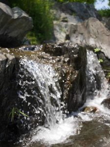 帰真園のお楽しみは水音。暑さとあいまって、ひときわ気持ちよく感じます。そばに座ってゆっくり水音を楽しむのもおすすめです。