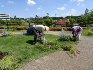 草とりや水やりなどの日常管理の他、6月の植え替え作業に向けて咲き終わった花を抜き取りました。