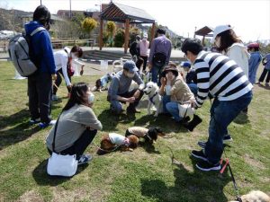 ・わんこと飼い主さん同士の交流や、地域の方の見学参加もあり、和やかな雰囲気の中、ドッグトレーナーの声がけでわんこと飼い主の様子が変わる場面もみられました。初めての試みとなる「参加のリピーター登録」も8組となり、終了後の撤収は一緒に行いました。人も犬にも気持ちよく過ごせる公園で引き続きあるために、今後も工夫しながら実施していきます。