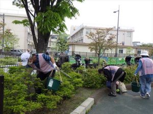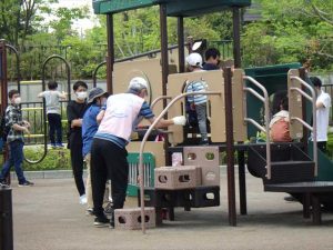 ・その後公園内を回りながら、遊具点検や園内の見どころ観察、外来植物の除去や確認作業を行いました。汗ばむほどの天気の日で、熱中症に気をつけながらの活動となりました。