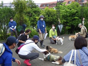 ・「わんことのハッピータイム」は雨上がり直後でしたが、通常とは内容を変えてエントランス広場ステージにて実施しました。サポーターのみなさんも多く来て下さり、少人数ながらも和気藹々とした雰囲気で実施することが出来ました。晴れの日とは異なる少人数での実施となり、「いつもより落ち着いて自分の犬の様子を観察できた」「前回よりも少しずつ犬の気持ちが分かってきた、飼い主が変わる必要があることに気づきました」などの声も聞かれました。「今はできなくとも続けて少しずつ犬と一緒に成長していきたい」と継続参加を望む声も多く、今後も工夫しながら継続して実施していきます。