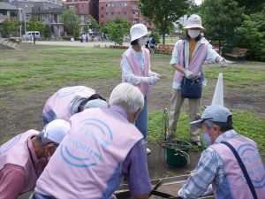 ・公園利用者に挨拶など声がけをしつつ、多世代での交流を楽しみながらの活動となりました。