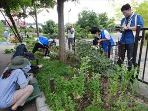 バタフライガーデンとして、どんなチョウがやってきているのかを確認しながら作業を行いました。夏休みに入った23日には、ジュニアサポーターと合同で実施。花壇のお手入れも協力してもらいました。暑さが厳しい日でしたが、ナミアゲハ1頭とヤマトシジミ7頭が確認できました。また、公園利用者のみなさんにもバタフライガーデンとして楽しんでもらえるよう、チョウを紹介する看板の設置も行いました。チョウを見つけたら、ぜひ看板と見比べてみてくださいね♪