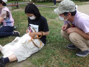 ・リピーターや初参加の方々合わせて8組のわんちゃんと飼い主さんの参加がありました。サポーターの皆さんは受付や安全管理、参加者への案内など活躍してくれました。