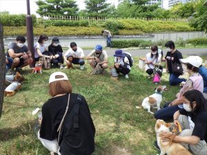 ・ドッグトレーナーの安全安心サポーターからレクチャーを頂いた後、犬同士のご挨拶練習を行いました。初めての参加のわんちゃんもいましたが、他のわんちゃんたちも挨拶をすることに慣れて来たのか溶け込んでいました。地面に座ると自然と輪となり、どのわんちゃんも落ち着いて過ごしていました。次回の「わんことわたしのコミュニケーション講座」にも早速の応募がありました。今後も「誰もが安心して過ごせる公園」をテーマに続けていきます。