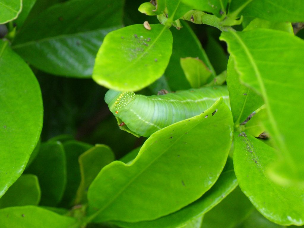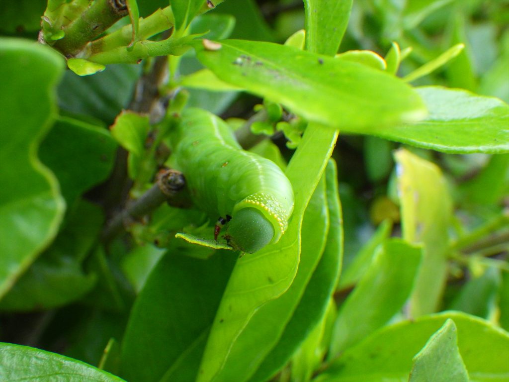 クチナシの若葉をモリモリ食べ、立派に育った終齢幼虫を見つけました。