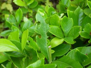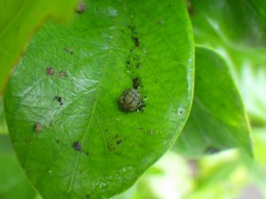 写真のように、葉の上にフンがあったり、齧られた痕のある葉を探してみてください。