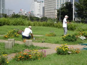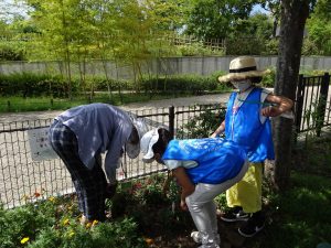 雨や曇りの天気が多く水やりの作業量は少し減ったものの、やはり大切な作業で、水やり中心の作業を行いました。水やりの合間には花がら摘みをしたり、草とりをしたりといった日常管理も行いました。参加人数が多いときはサポーターさん同士で手分けをしながら、短時間でできる作業をみんなで相談しながら進めました。