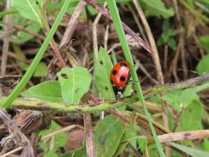 早速、草の根元を忙しなく動くナナホシテントウを発見!