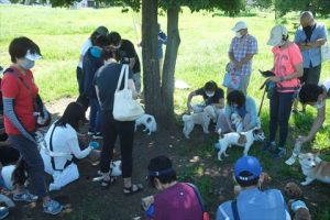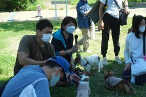 秋晴れの気持ちの良い朝、たくさんの飼い主さんとワンちゃんが集まり、にぎやかな会となりました。はじめての参加でどきどきしていたわんちゃんも、ご挨拶の仕方を学んで最後には落ち着いて和やかに場にいられるようになりましたよ。