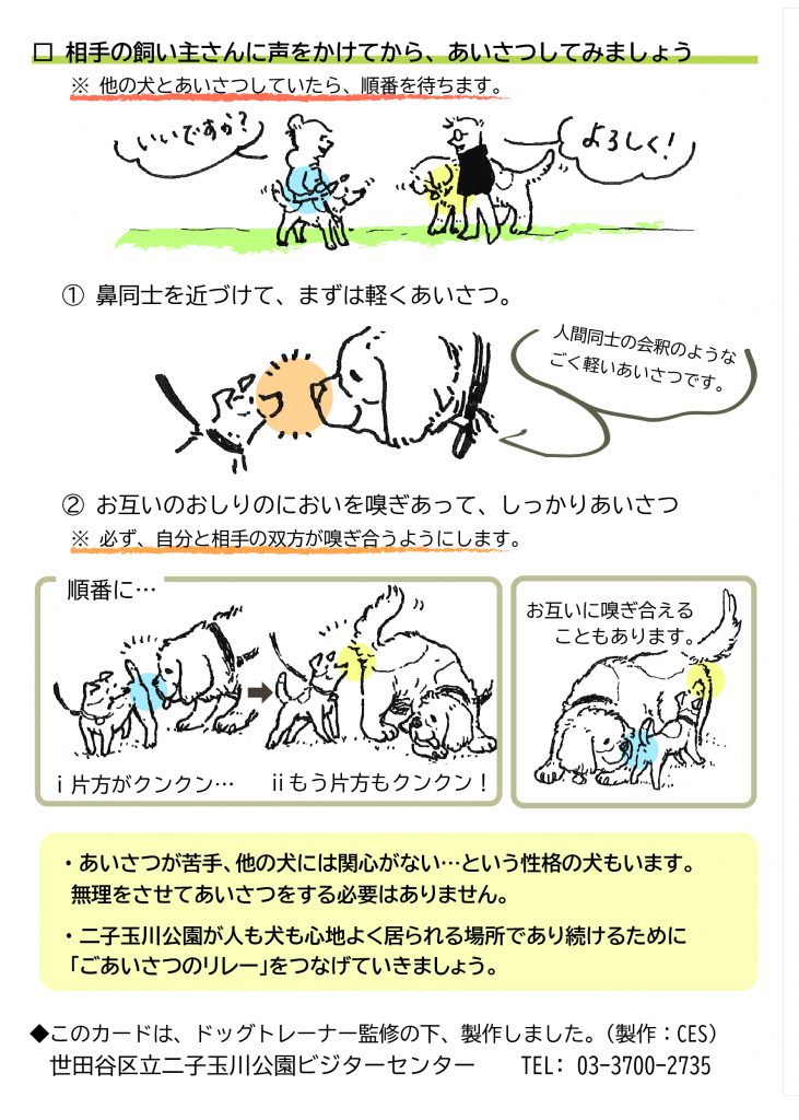 ※ご参加の際は、事前に下の「なかよしカード」でわんこ同士のご挨拶や飼い主さんとのやり取りの仕方をご確認下さい。