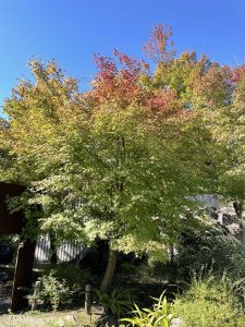 イロハモミジ。上の方から少しづつ色づきはじめています。
