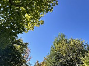 ふだんは「なにか咲いているお花があるかな」「生きものはいるかな」と池の中をのぞいたり、地面近くをみていることが多いのですが、光にさそわれて、気づけば上を見上げていました。
